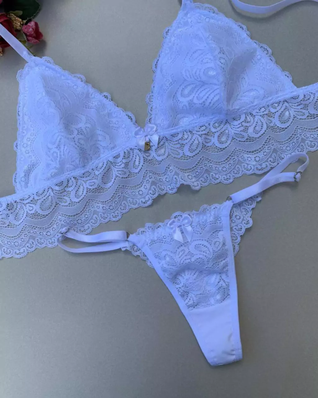 Explore a sensualidade com nosso Conjunto Sensual de Lingerie Silvana. Este conjunto inclui um sutiã top sem bojo que sustenta suavemente seus seios, e uma calcinha fio duplo com regulagem nas laterais para um caimento perfeito. (obs.: a liga vende separadamente.)
