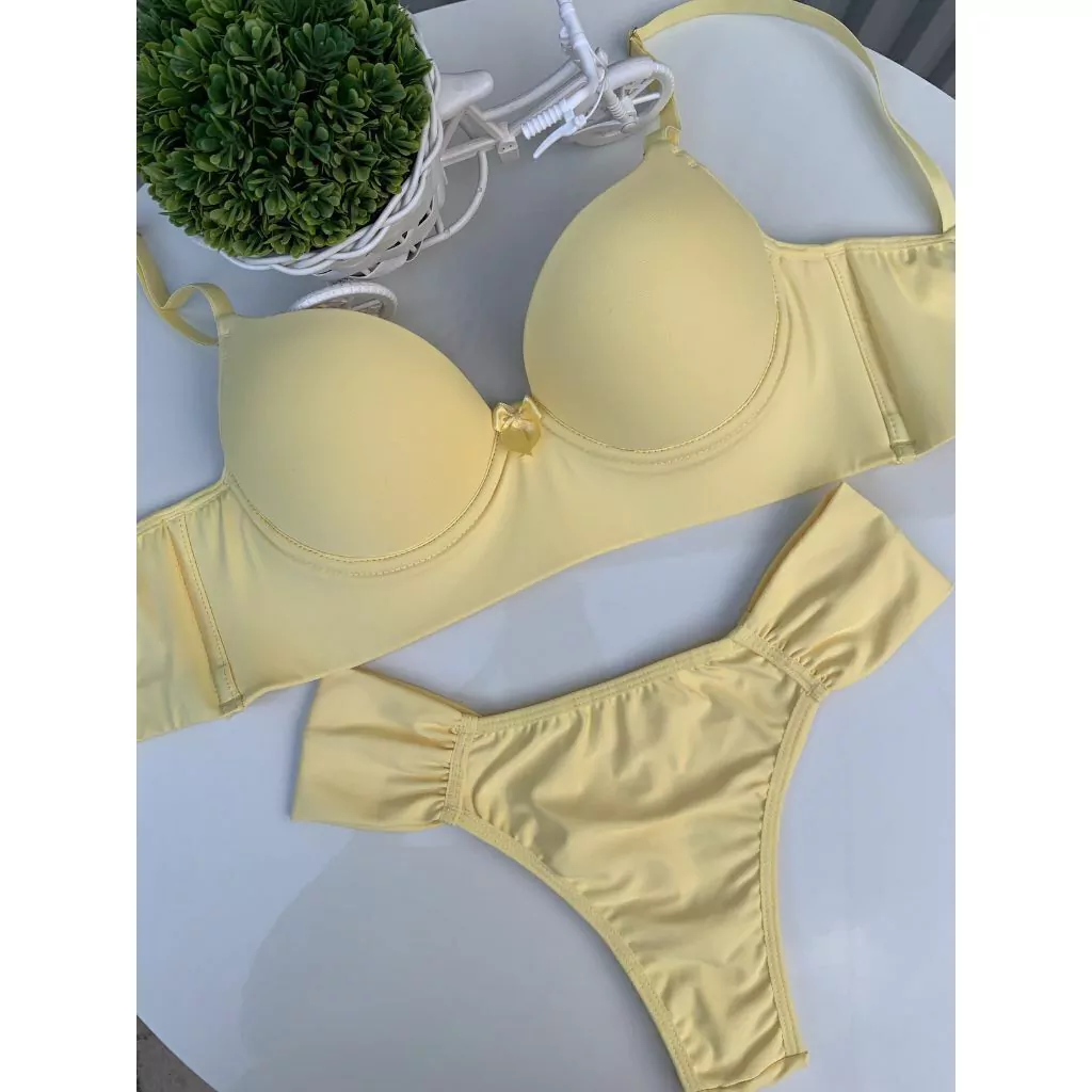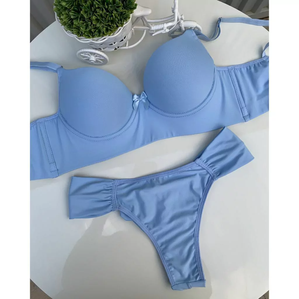 O conjunto Calcinha e Sutiã Sol e Cia é confeccionadas com tecido em microfibra, levemente elástico e com toque super macio garantindo conforto e maciez, tem base larga com barbatanas laterais, possui bojo com espuma macia na base, com aros para maior sutentação, fecho triplo, alças elásticas reguláveis, valorizando lindamente as curvas do seu corpo. Modelo ideal para usar no dia a dia.