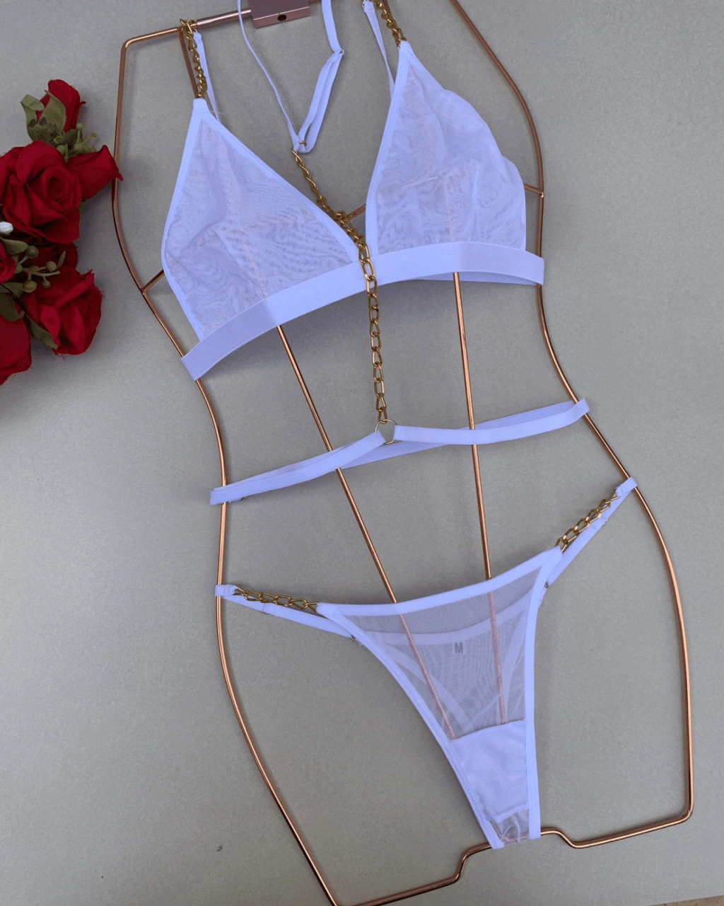 CONJUNTO CALCINHA E SUTIÃ COM DETALHES EM CORRENTE SEXY