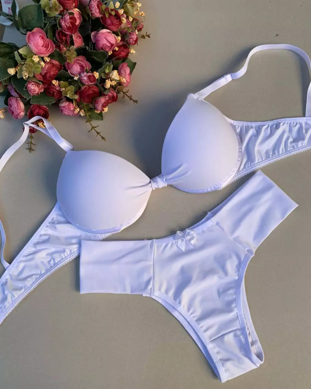 As peças são confeccionadas com tecido em microfibra, levemente elástico e com toque super macio garantindo conforto e maciez, possui um detalhe largo nas laterais da calcinha e amarração no sutiã valorizando lindamente as curvas do seu corpo, fundo com forro 100% algodão. Um mix de sofisticação e modernidade na medida certa.