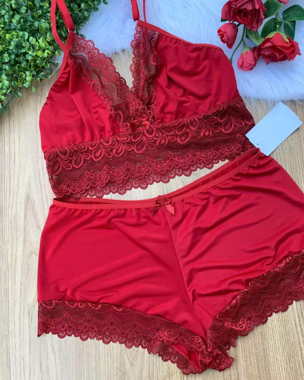O Short doll cropped da Sol e Cia é a escolha ideal para desfrutar o verão com estilo e conforto. tem modelagem linda e sensual com detalhes em renda, foi confeccionado especialmente para proporcionar a você conforto, delicadeza e sensualidade, tem toque frio e macio, as alças possuem regulagem em metal